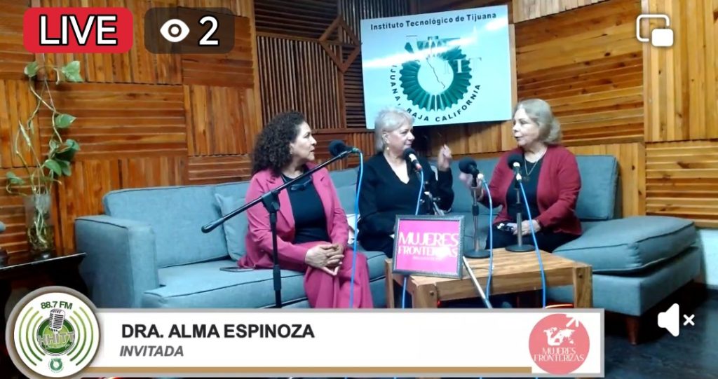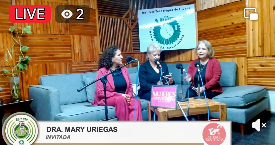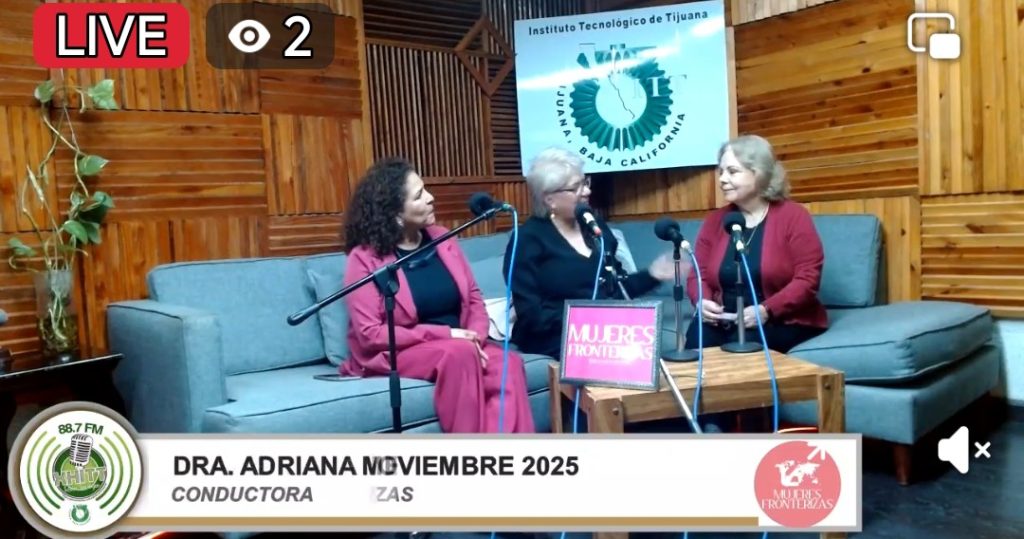 En el programa de radio Mujeres Fronterizas la Doctora Adriana Mendioléa entrevistando s la Dra. María Esther Mary Uriegas y la Dra. Alma Espinoza88.7 fm Radio Tecnológico noviembre 2025